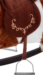 Siodło i metalowe strzemiona pomagają dzieciom utrzymać stabilną pozycję i wspierają prawidłową równowagę podczas bujania.