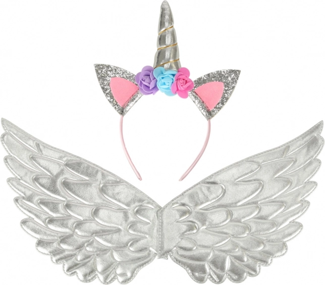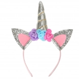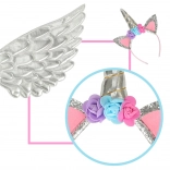 Ta opaska zamieni każde dziecko w magicznego jednorożca dzięki eleganckiemu srebrnemu rogowi i dekoracyjnym kwiatom.
