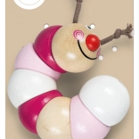 Detoa Różowa Gąsienica Tea to interaktywna, kolorowa zabawka z drewnianych elementów nawleczonych na gumkę, która porusza się, obraca i wygina. Idealna do rozwoju motoryki małej u dzieci od 6 miesięcy.