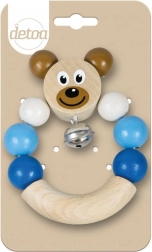 Drewniana grzechotka z misiem w niebieskim kolorze. Łatwa do chwytania, dzwoneczek delikatnie dźwięczy. Grzechotka jest lekka i odpowiednia dla dzieci od 6. miesiąca życia. W ekologicznym, naturalnym opakowaniu.