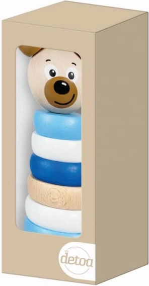Ta kreatywna drewniana piramida z motywem Niedźwiedzia to idealna zabawka dla dzieci, które chcą rozwijać swoje kluczowe umiejętności. Dzięki niebieskiej palecie kolorów: