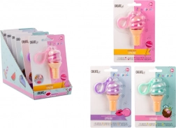 Uroczy błyszczyk do ust w kształcie rożka z lodami, który jednocześnie służy jako brelok. Dostępny w trzech wariantach kolorystycznych i trzech smakach, idealny do szybkiego odświeżenia ust oraz jako stylowy dodatek do torby lub kluczy.