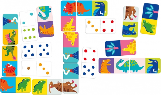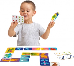 Najmłodsi mogą zacząć od parowania takich samych obrazków lub łączenia połówek ilustracji. Starsze dzieci polubią klasyczne domino z liczeniem kropek na rewersie elementów. Nazywajcie dinozaury i kolory, trenujcie liczenie i rozwijajcie komunikację.