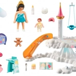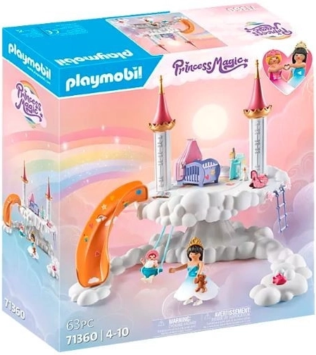 Na niebiańskiej chmurce PLAYMOBIL czeka niesamowita, magiczna przygoda. Pod ochroną tęczy i światła tęczowego kwiatu księżniczki troszczą się o dobro wszystkich stworzeń. Najmłodsi mieszkańcy królestwa otoczeni są czarodziejską opieką: kołyska, konik na biegunach, pluszowy miś, zjeżdżalnia i pyszne jedzenie – to wszystko, aby zapewnić najlepszą opiekę.