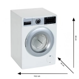 Ten model pralki spełnia wszystkie oczekiwania małych domowych pomocników dzięki wzornictwu wiernie naśladującemu oryginalną pralkę Bosch.