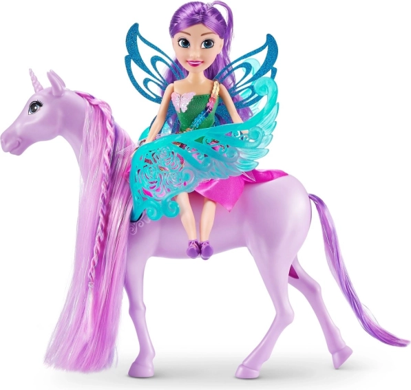 Odkryj czarujący duet wróżki i jej jednorożca, idealny do kreatywnych opowieści o magii i przygodach. Laleczka ma długie fioletowe włosy, które można czesać i stylizować, błyszczący strój oraz ruchome kończyny do pozowania. Jednorożec z regulowanymi skrzydłami i zaplataną grzywą zaprasza na fantastyczne przejażdżki.