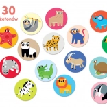 - Wesołe ilustracje dzikich zwierząt zachęcają do wielokrotnej zabawy.