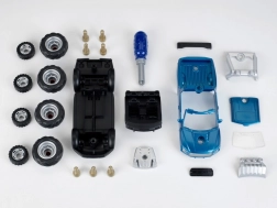 Zestaw pozwala rozebrać pojazd na podwozie, koła i karoserię oraz ponownie go złożyć. Świetny do rozwoju małej motoryki i logicznego myślenia.