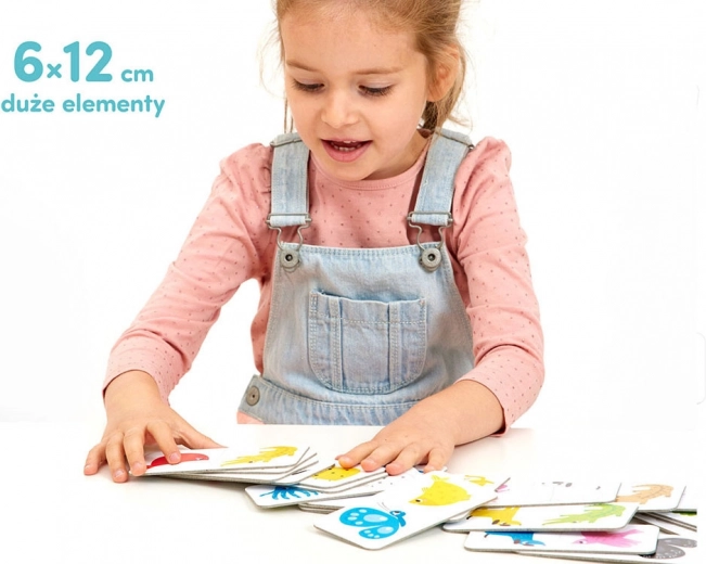 - 28 dwustronnych elementów: łącz według kolorów, zwierzątek, kolorów ze zwierzątkami lub według kropek