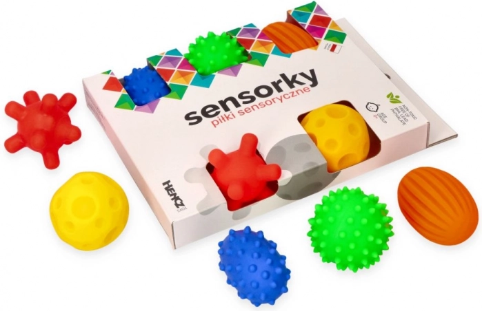 Odkryj zabawną i edukacyjną zabawkę dla niemowląt i maluchów: sensoryczne piłeczki Sensorky w zestawie 5 sztuk. Każda piłeczka ma inną teksturę i kształt, co zapewnia stymulację dotykową, rozwój małej motoryki oraz koordynację ręka–oko. Miękka, antypoślizgowa powierzchnia jest przyjemna w dotyku, bezpieczna dla dzieci od urodzenia i świetna do ściskania, turlania i masażu.