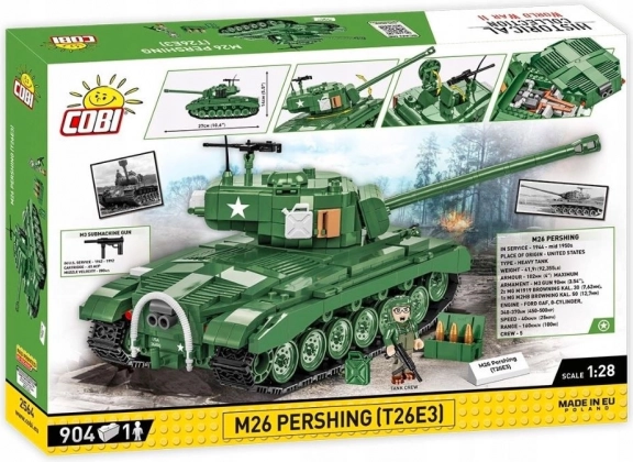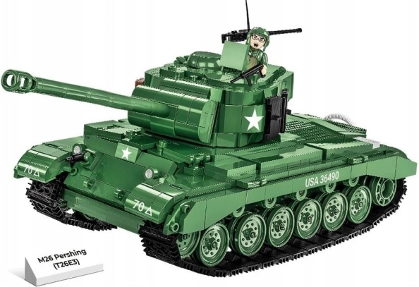 Odkryj współczesne amerykańskie czołgi Pershing, które brały udział w ostatnich miesiącach drugiej wojny światowej i wyróżniały się swoją efektywnością. Ten model czołgu jest wiernie odtworzony w skali 1:28 przy użyciu 904 elementów COBI.