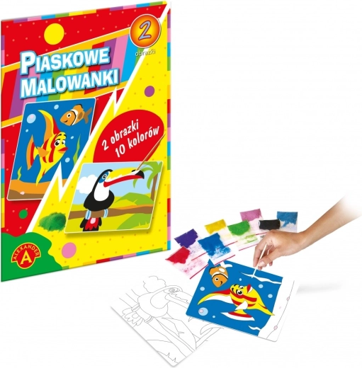 Popularna dziecięca zabawa plastyczna z malowaniem piaskiem, podczas której stopniowo odkrywa się poszczególne wycięte elementy obrazka, aby odsłonić lepką powierzchnię. Odsłonięte elementy posypuje się piaskiem, w kolorze wzoru lub według własnej fantazji, tworząc w ten sposób piękną ilustrację.