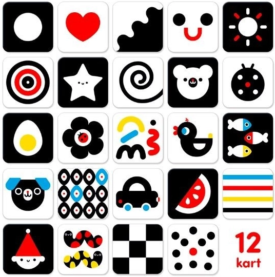 Unikalna cecha: ilustracje są dostosowane do rozwijającego się wzroku niemowląt. Możesz używać pojedynczych kart lub całej książeczki.