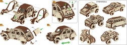 Ten model auta rajdowego łączy wciągającą kreatywną zabawę z elegancką dekoracją do wnętrza. Elementy z pierwszorzędnej sklejki brzozowej dokładnie do siebie pasują – bez kleju i śrub – a efektem jest imponujący retro samochód z mnóstwem drobnych detali.