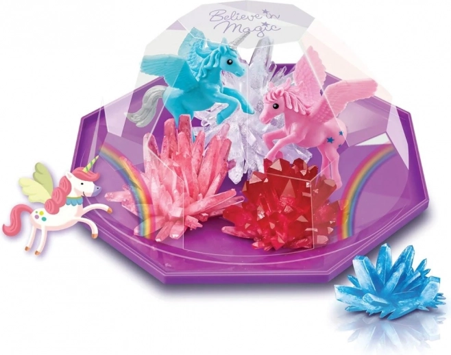 Stwórz własny magiczny, kryształowy świat z terrarium jednorożców. Zestaw pozwala wyhodować do 4 kolorowych kryształów w ciągu 4–7 dni. Idealny dla dzieci, które kochają naukę, kreatywne tworzenie i jednorożce.