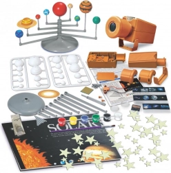 Z tym edukacyjnym zestawem dzieci w przystępny, zabawny sposób poznają zasady nauki i eksploracji kosmosu. Zbudują własny model Układu Słonecznego, zrozumieją akcję i reakcję podczas startu rakiety, a dzięki projektorowi zajrzą w głąb kosmosu. W komplecie są także świecące gwiazdy, które po naświetleniu delikatnie jarzą się i zamienią dziecięcy pokój w nocne niebo.
