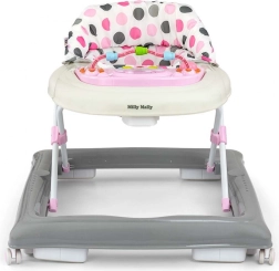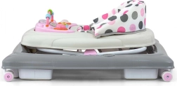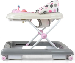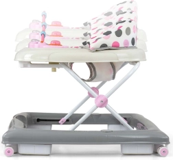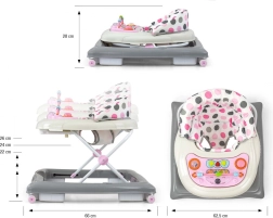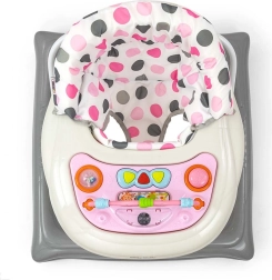 Produkt ma panel edukacyjny, który zawiera szereg niespodzianek czekających na małych odkrywców: światełka, piszczałki, melodie, grzechotkę, przyciski i inne ruchome elementy. Po wyjęciu panelu z wanienki chodzika można go używać jako oddzielnej zabawki, np. towarzysza w podróży, a górną część można wykorzystać jako stolik do zabawy.