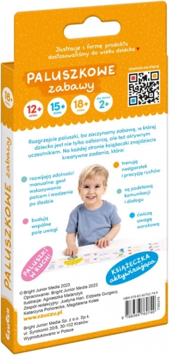Odkryj zabawną książeczkę harmonijkową CzuCzu dla dzieci od 18 miesięcy, która wspiera rozwój małej motoryki, koncentracji i koordynacji oko–ręka. Kolorowe ilustracje i proste zadania zachęcają dzieci do wskazywania palcem, podążania po śladzie i aktywnego udziału w zabawie.
