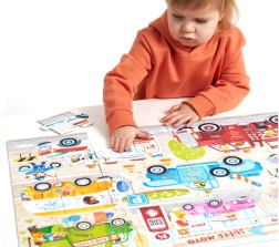 Te wciągające puzzle to nie tylko świetna zabawa, ale też sprytna pomoc w rozwoju dziecka. Podczas układania dzieci trenują koordynację ręka–oko, uczą się kolorów i kształtów, wzmacniają cierpliwość i koncentrację. Gotowy obrazek to doskonały bodziec do kreatywnych opowieści i dalszych zabaw.