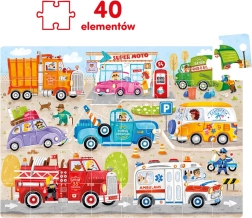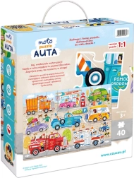 Brum, brum – zapnij pasy, ruszamy! CzuCzu Moto puzzle Auta ucieszą każdego małego fana dróg i maszyn. Wielkoformatowa, 40‑elementowa układanka przedstawia różne auta, ciężarówki i maszyny robocze w ruchu, więc dzieci łatwo znajdą swojego ulubieńca.