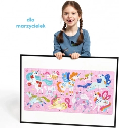 Puzzle Ach Jednorożce są idealnym prezentem dla kreatywnych przedszkolaków. Ta jasno kolorowa układanka z 60 elementów przedstawia 10 magicznych koników ze świata fantazji i oferuje nieskończone możliwości zabawy.