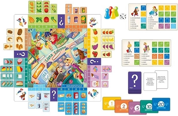 Wyrusz na zakupową wyprawę! Każdy gracz otrzymuje swoją listę zakupów i taką samą ilość pieniędzy. Zadaniem jest jak najszybciej kupić wszystkie pozycje, a jednocześnie zmieścić się w budżecie. W trakcie gry dzieci liczą do 100, decydują, co i kiedy kupić, oraz uczą się planować wydatki.