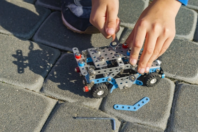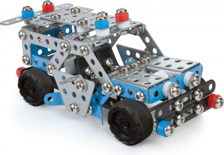 Złóż dopracowany model z funkcjonalnymi elementami z części metalowych i plastikowych. Idealny dla dzieci, które lubią tworzyć i odkrywać zasady konstrukcji.