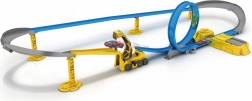 Niebieskie tory i solidne żółte podpory zapewniają płynny przejazd przez pętlę bez utraty prędkości – idealnie do zawodów i bicia rekordów.