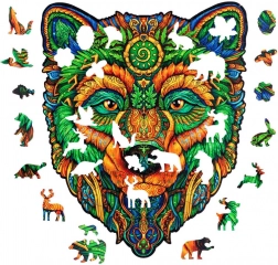 Unikalne drewniane puzzle z motywem Mądrego niedźwiedzia oferują nowe wyzwanie dzięki specjalnie ukształtowanym elementom i laserowo podkreślonym detalom. Ciesz się układaniem z gładkimi krawędziami i wysoką jakością wykonania.