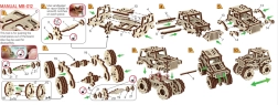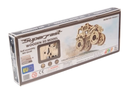Model wykonany jest z wysokiej jakości sklejki, składa się bez kleju i narzędzi i jest odpowiedni także dla początkujących. Dla płynnej pracy mechanizmu wystarczy lekko nasmarować koła zębate i osie woskiem (np. ze świeczki), co zmniejszy tarcie i zwiększy trwałość.