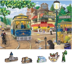 Te premiumowe drewniane puzzle przedstawiają żywą scenę z retro tramwajem i uliczką pełną detali z epoki. Dzięki laserowo wycinanym elementom z gładkimi krawędziami układanie to przyjemność i wyzwanie w jednym. Dwustronne wykonanie pozwala układać od frontu według motywu lub od spodu według powtarzalnego wzoru.