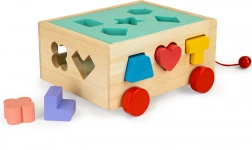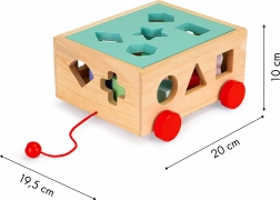 Zabawka ma specjalne otwory na ścianach do przyporządkowania odpowiedniego kształtu do otworu. Dziecko poznaje różne kształty i uczy się rozpoznawać podstawowe kolory.