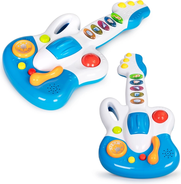Elektryczna gitara pomaga dzieciom rozwijać słuch i umiejętności motoryczne poprzez interaktywną zabawę muzyczną.