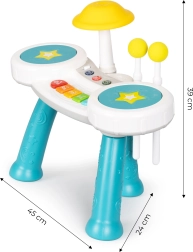 Ten produkt łączy pianino i perkusję, aby zapewnić dzieciom doskonałą muzyczną rozrywkę.