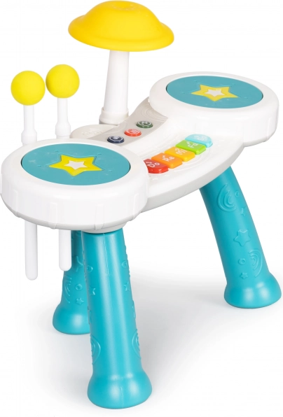 Dzięki dwóm dołączonym pałeczkom dziecko może grać jak na prawdziwej perkusji i zmieniać tryby.
