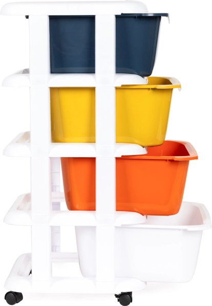 Mobilny organizer ModernHome oferuje praktyczne i wszechstronne rozwiązanie do przechowywania różnych przedmiotów. Jest idealny do przechowywania zabawek w pokoju dziecięcym lub kosmetyków w łazience. Jest wykonany z trwałego plastiku, który zapewnia długą żywotność, a jego biały stelaż dodaje nowoczesnego wyglądu.