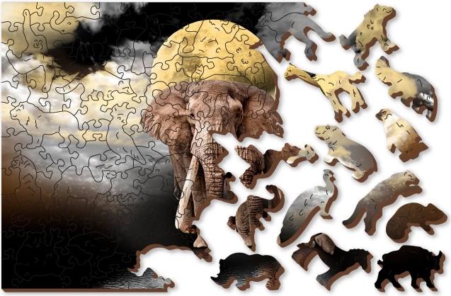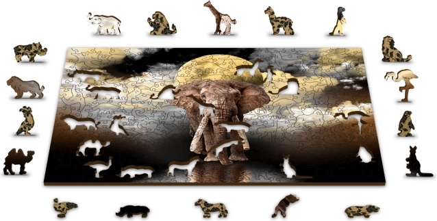 Drewniane puzzle Słonie sny marki WOODEN CITY łączą rozrywkę i wyzwanie dla miłośników puzzli. Zostały wykonane z wysokiej jakości płyty HDF z włókien drzewnych i zawierają elementy wycinane laserowo, co zapewnia gładkie krawędzie bez drzazg. Dwustronny design umożliwia układanie zarówno według obrazka, jak i według kształtów.