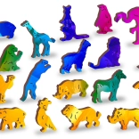 Puzzle zawierają elementy w kształcie znanych budowli, przedmiotów i zwierząt według tematycznego motywu. Te elementy zwiększają trudność układania.