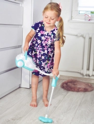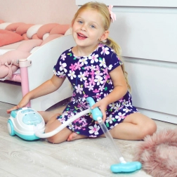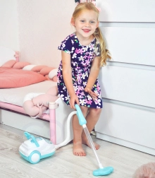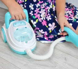 Po włączeniu odkurzacz świeci i wydaje realistyczne dźwięki, co dodatkowo pobudza wyobraźnię i zabawę w role.