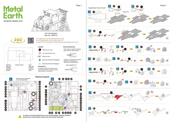 Opakowanie zawiera 2 duże stalowe arkusze oraz szczegółową instrukcję montażu. Narzędzia nie są częścią opakowania. Przygotuj małe szczypce i kleszcze, aby pomyślnie złożyć realistyczny model.