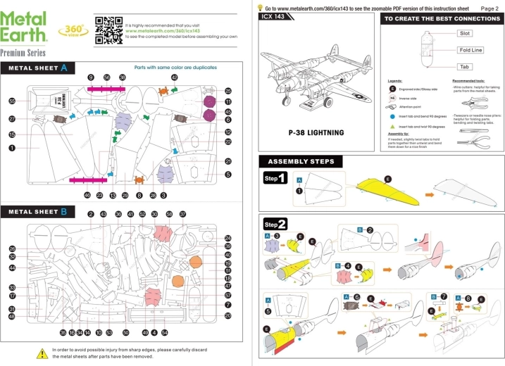 METAL EARTH 3D puzzle Lockheed Martin P-38 Lightning (ICONX)