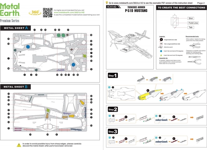 Opakowanie zawiera dwie stalowe blaszki, pęsetę i instrukcję montażu. Gotowy model ma wymiary ok. 15,7 x 19,3 x 7,9 cm. Rekomendowane dla wieku od 14 lat.
