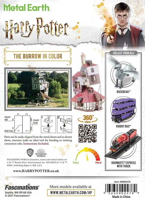 Odkryj magię modelarstwa z 3D metalowym puzzle METAL EARTH Harry Potter: Nora (The Burrow). Z precyzyjnie wyciętych stalowych blaszek złożysz szczegółową miniaturę z podkreślonymi teksturami i autentycznymi elementami, które wyróżniają się dzięki precyzyjnemu grawerowi laserowemu. Gotowy model idealnie sprawdzi się jako dekoracja na biurko lub półkę, a także jako prezent dla fanów HARRY POTTER.