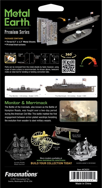Zbuduj USS Monitor oraz CSS Virginia (Merrimack) – ikoniczne okręty z Amerykańskiej wojny secesyjnej w realistycznym wydaniu ze stali nierdzewnej.