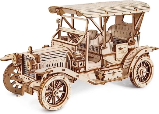 Drewniane 3D puzzle historycznego auta od RoboTime jest wierną repliką vintage pojazdów z ery mosiądzu, zainspirowane pojazdami z lat 10. XX wieku. Aerodynamiczny błotnik i eleganckie linie przynoszą wygląd przypominający powozy ciągnięte przez konie, wraz z autentycznymi detalami takimi jak dźwignia zmiany biegów i wygodne siedzenia – to wszystko przyczynia się do unikalności tego modelu.