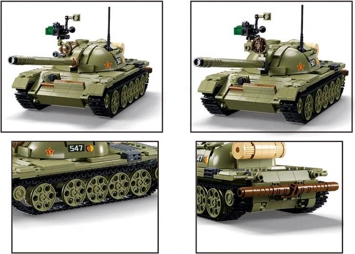 W zestawie można zbudować aż trzy różne modele średniego czołgu T54S, co zapewnia większą różnorodność i zabawę.