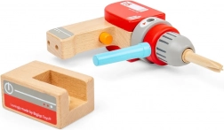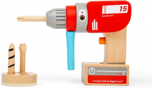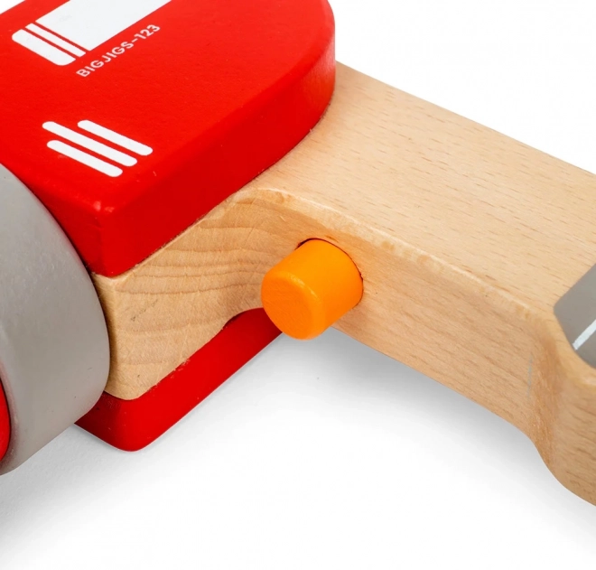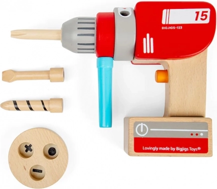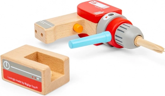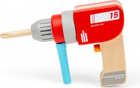 Ta drewniana wiertarka wiernie naśladuje prawdziwe narzędzie, ale bez prądu i ostrych elementów. Dzieci mogą ręcznie obracać głowicą wiertarki, przełączać wyimaginowane tryby za pomocą klikającego przycisku oraz łatwo zakładać magnetyczne wiertła i śruby. Idealna do zabaw w budowanie półek czy mebli oraz rozwijania praktycznych umiejętności.