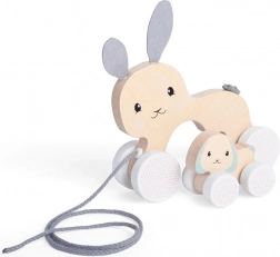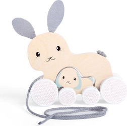Ten uroczy króliczek do ciągnięcia z ukrytym młodym to idealny towarzysz pierwszych wypraw po mieszkaniu. Dzięki wysokiej jakości wykonaniu z zrównoważonego drewna FSC® oraz farbom bezpiecznym dla dzieci zabawa jest nie tylko przyjemna, ale i bezpieczna. Miękkie filcowe uszy i ogonek nadają zabawce miły wygląd i przyjemną stymulację dotykową.