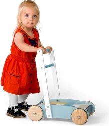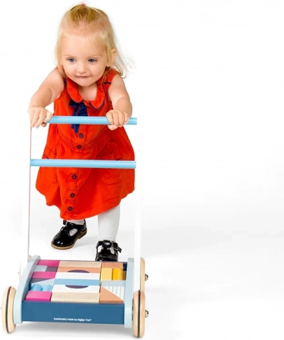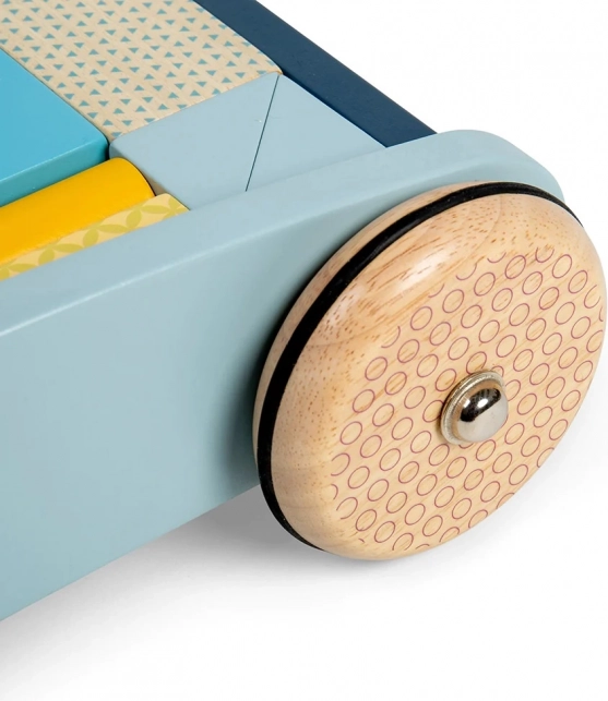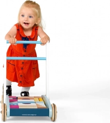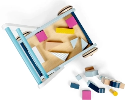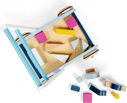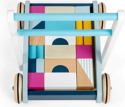 Stylowy drewniany pchacz w pastelowych kolorach wspiera pierwsze kroki i kreatywną zabawę. Wykonany z drewna z certyfikatem FSC, ma stabilną konstrukcję i łatwy do uchwycenia uchwyt dla bezpiecznego chodzenia. W zestawie znajduje się 25 kolorowych klocków o różnych kształtach i rozmiarach, które wspierają rozwój motoryki, koordynacji ręka–oko oraz rozpoznawania kolorów i kształtów.