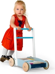 Solidna drewniana konstrukcja, dobrze leżący w dłoni uchwyt i kółka z dobrą przyczepnością pomagają dzieciom chodzić pewnie i bezpiecznie.